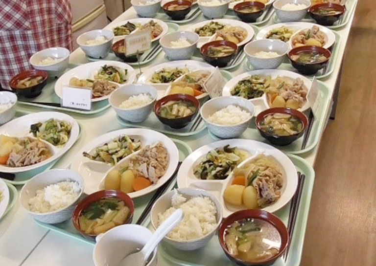 吹田市内のB型事業所で調理している栄養バランスの整った給食が温かいうちにほくほくへ届けられ、温かいうちに配膳します。