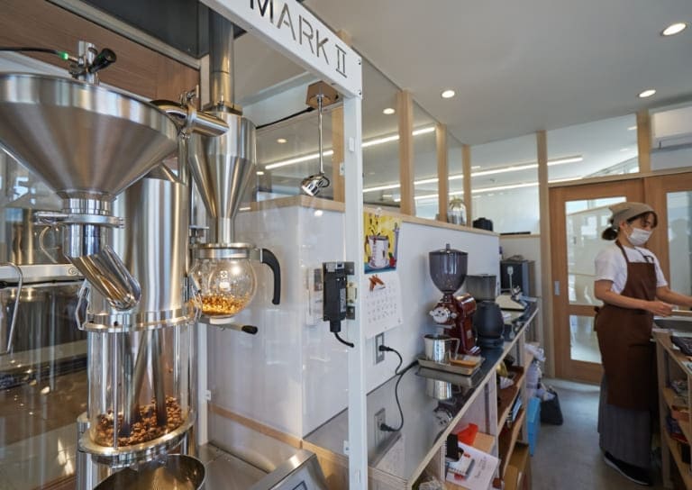 珈琲豆が踊るように焙煎される「魅せる焙煎機」です