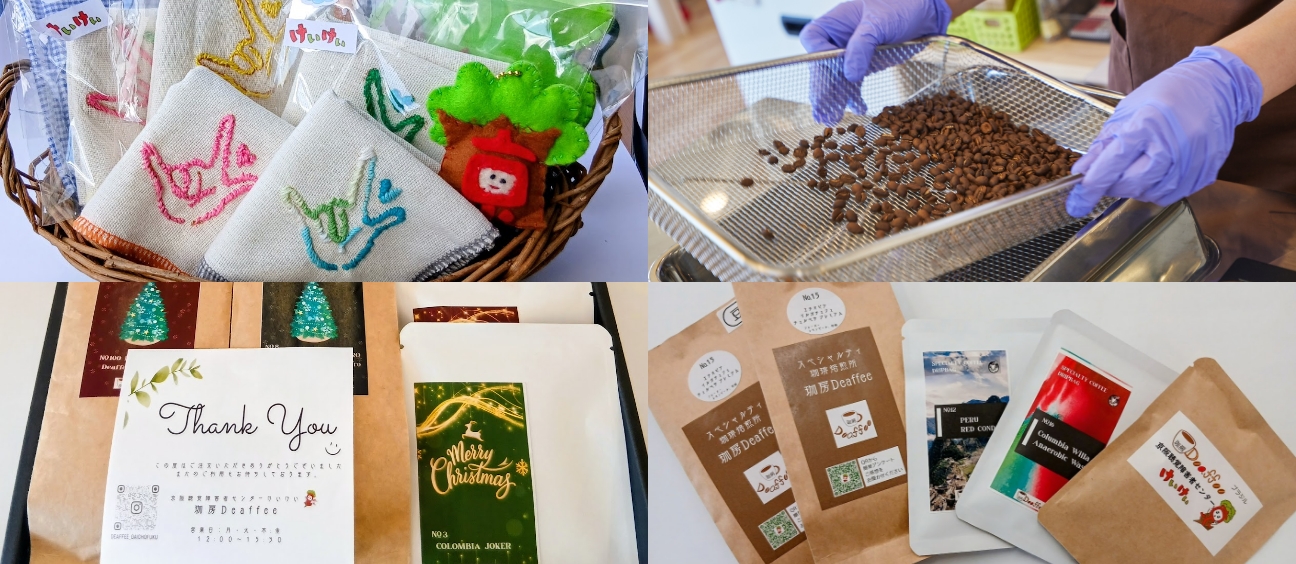大阪聴覚障害福祉会では利用者が制作した商品を販売しています。季節に合わせたセット等については以下の新着情報からご覧ください。