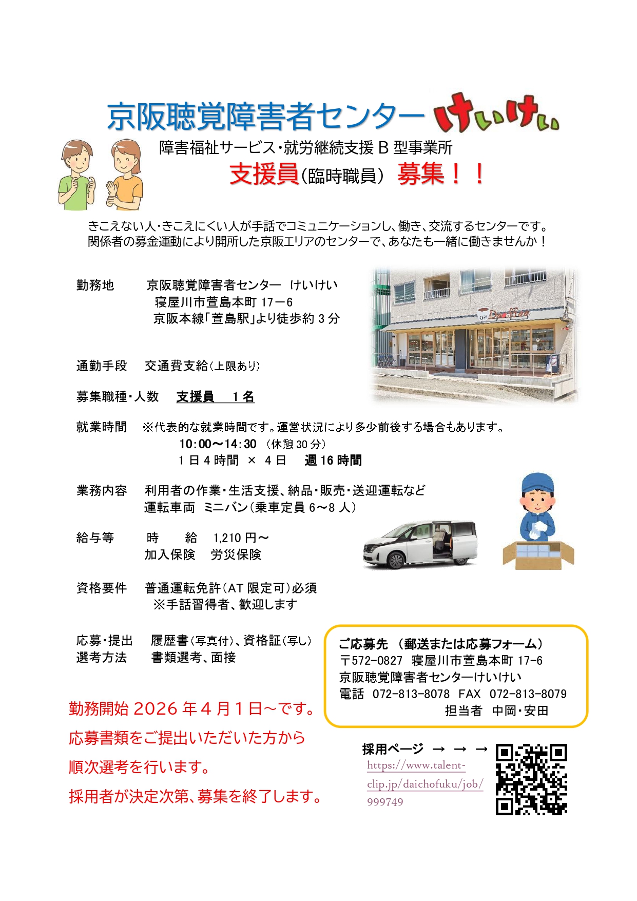 京阪聴覚障害者センターけいけいの支援員を募集します