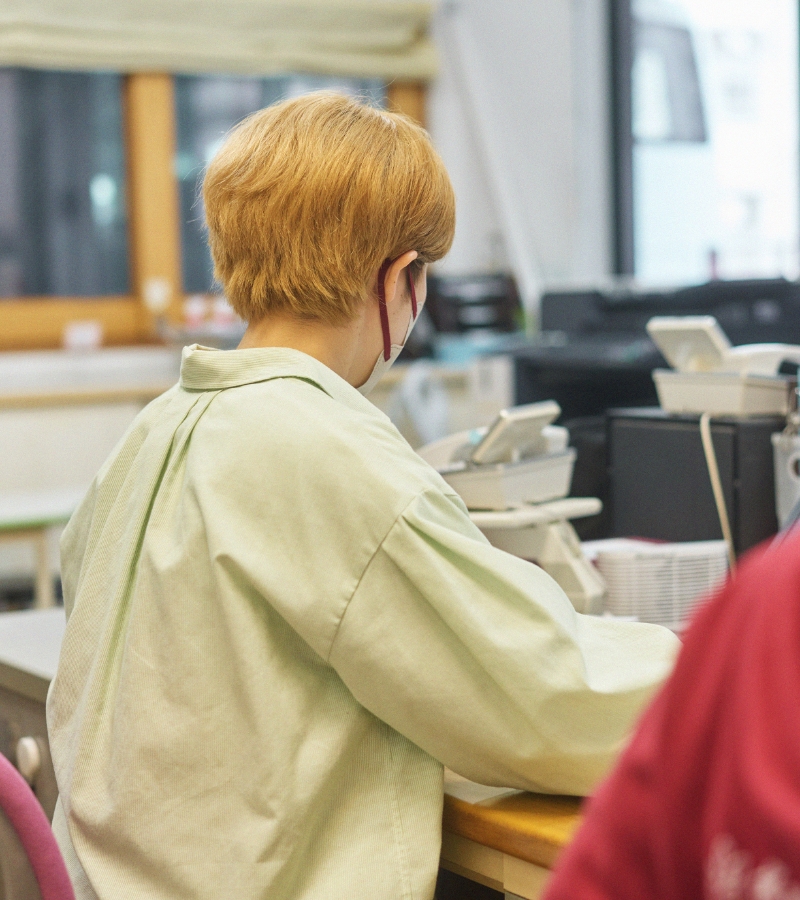 手話を学ぶことで人と深く繋がる喜びを知りました。現在は総括主任として、働きやすい環境作りに尽力し、それが全体のサービス向上につながっています。事務作業が増えて利用者とのコミュニケーションは少し減りましたが、より大きな影響を与える役割を担うことに充実感を感じながら、利用者一人ひとりに合わせた支援を続けています。
